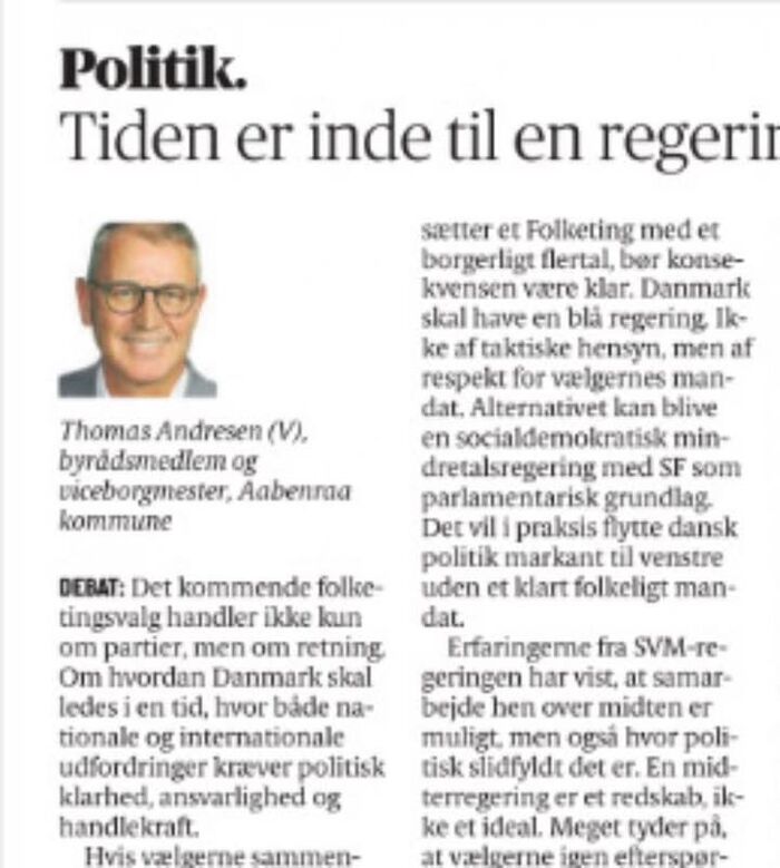 En blå regering kræver dog mere end et snævert flertal. Den kræver et klart mandat til Venstre og den borgerlige konstellation. Bliver regeringen for afhængig af yderfløjspartier, risikerer vi politisk lammelse og manglende handlekraft.